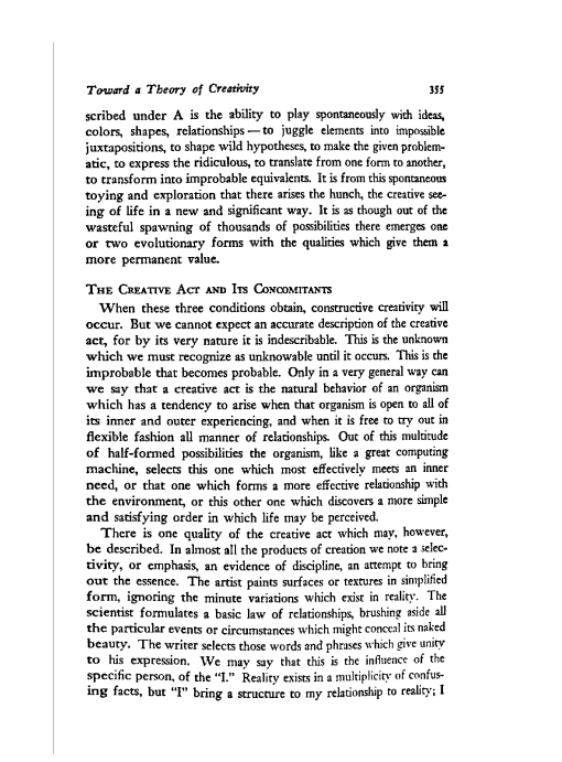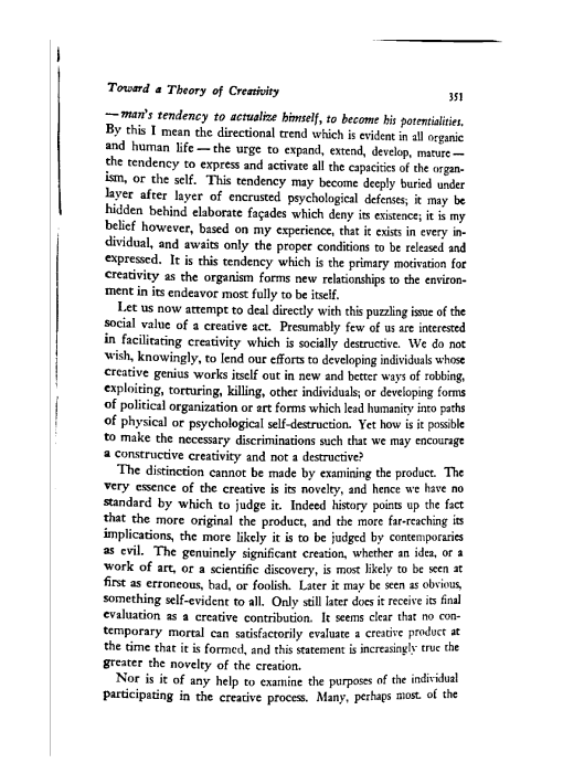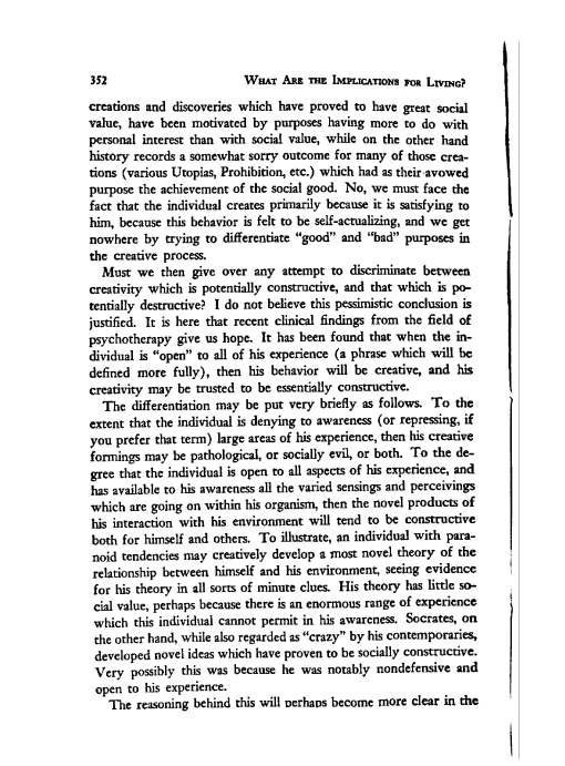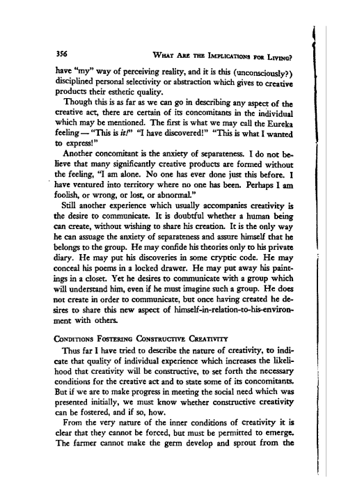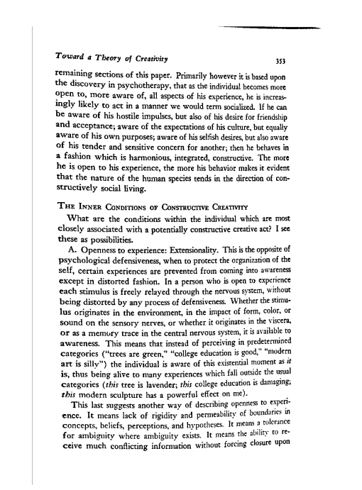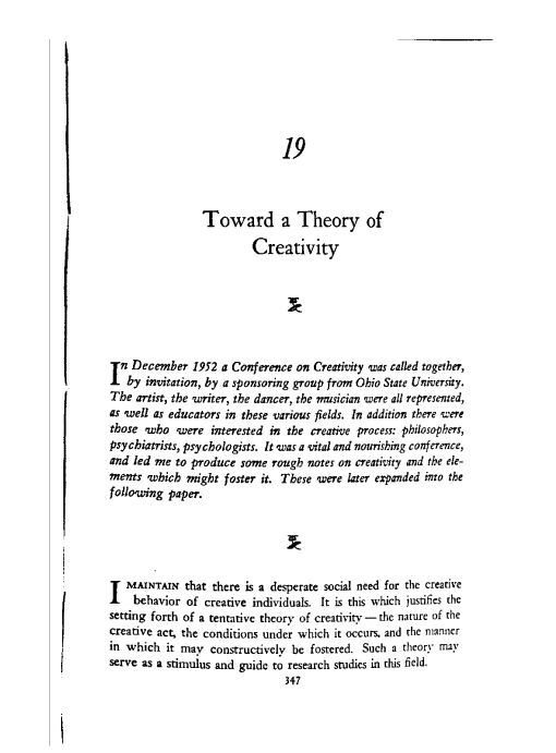 Chapter 19 of On Becoming a Person (1961) by Carl Rogers: Toward a Theory of Creativity